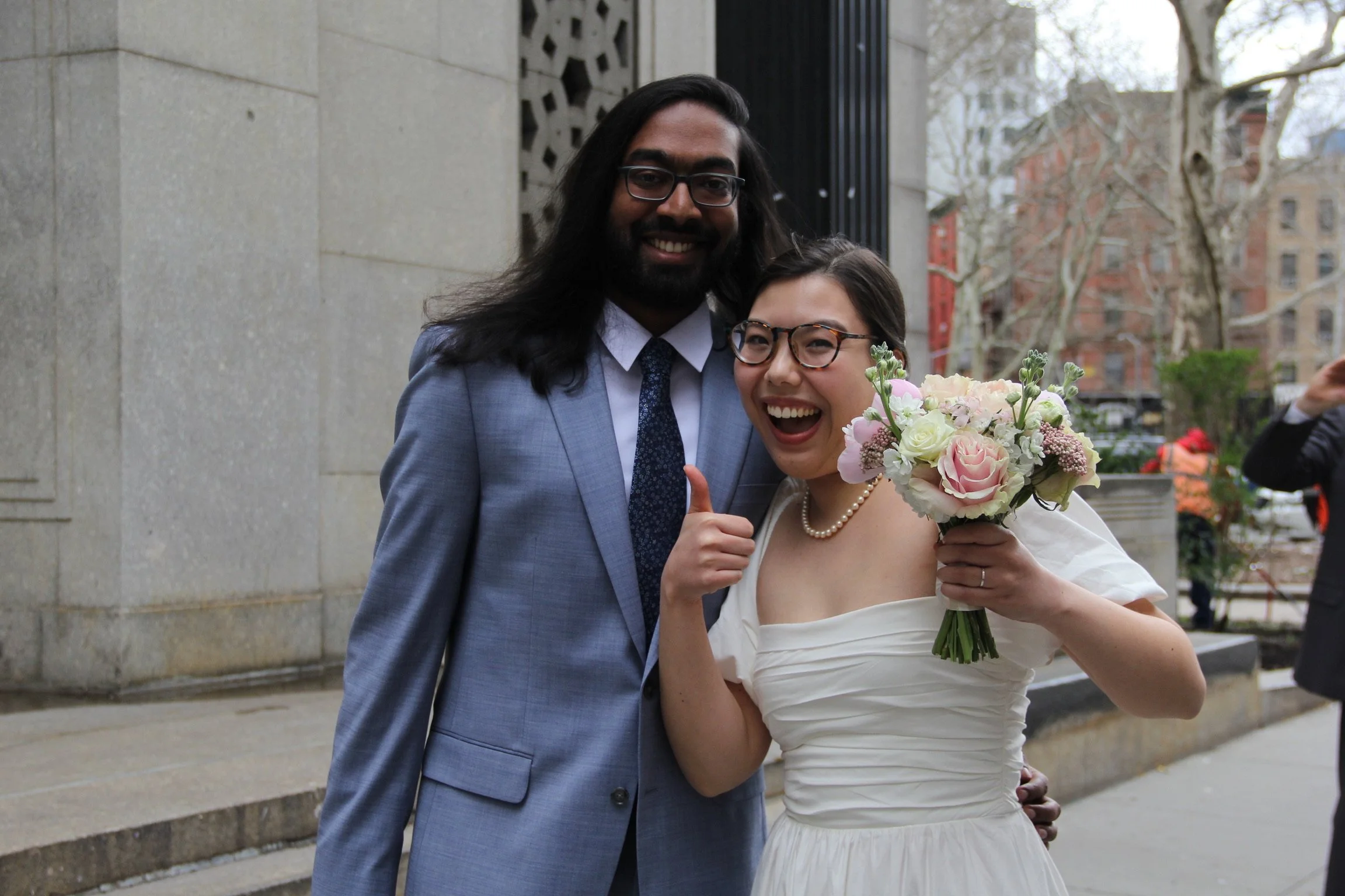 Ten years later, they have a cat named Beatrice and a cozy (if chaotic) life together in New York City, where they enjoy eating late-night halal and admiring the local fauna—especially the pink pigeon that lives in their building’s courtyard.